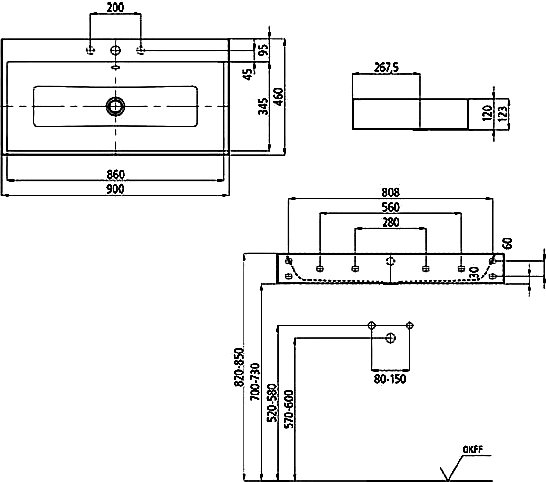 Раковина настенного монтажа Puro с 1 отверстием под смеситель с самоочищающимся покрытием и звукоизоляцией alpine white, эмалированная внутри и снаружи, с переливом.