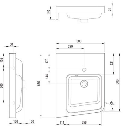 Раковина Ravak Be Happy II 50 см XJAL1100001, установка в левый угол.