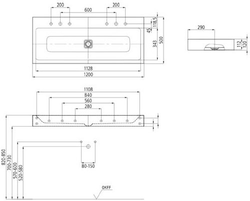 Раковина подвесная Kaldewei Cono 120x50 mod. 3091 902706013001