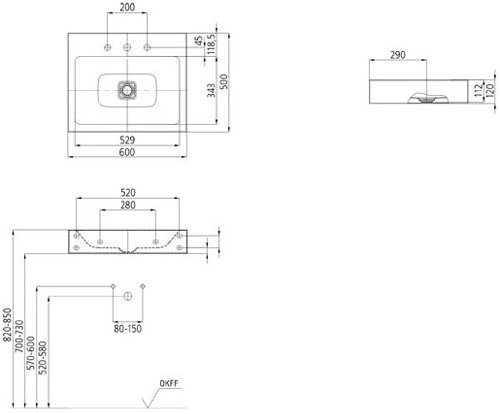 Расположение отверстий для смесителя