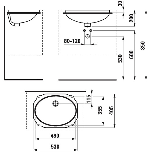 Раковина Laufen Birova 53х40,5 8.1119.1.000.000.1, встраиваемая снизу