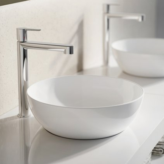 Раковина подходит для установки на столешницу или подвесную тумбу SUD 260.01 со смесителями Chrome CR 015.00 и 10° TD 015.00.