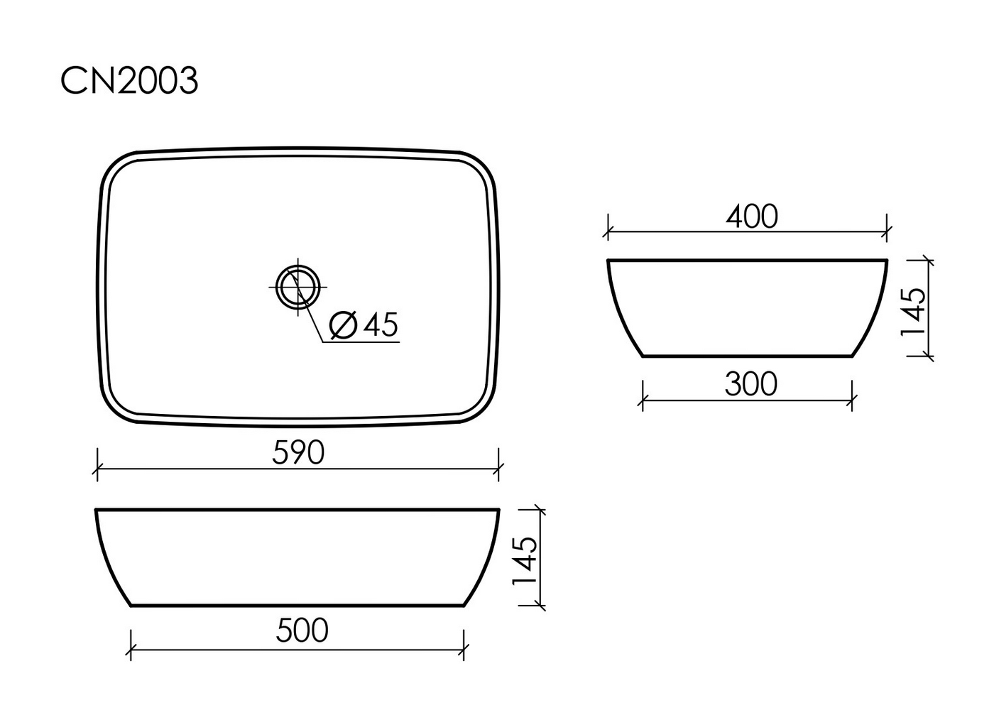 Накладные раковины CERAMICANOVA CN2003 Умывальник чаша накладная прямоугольная FORM 590*400*145мм