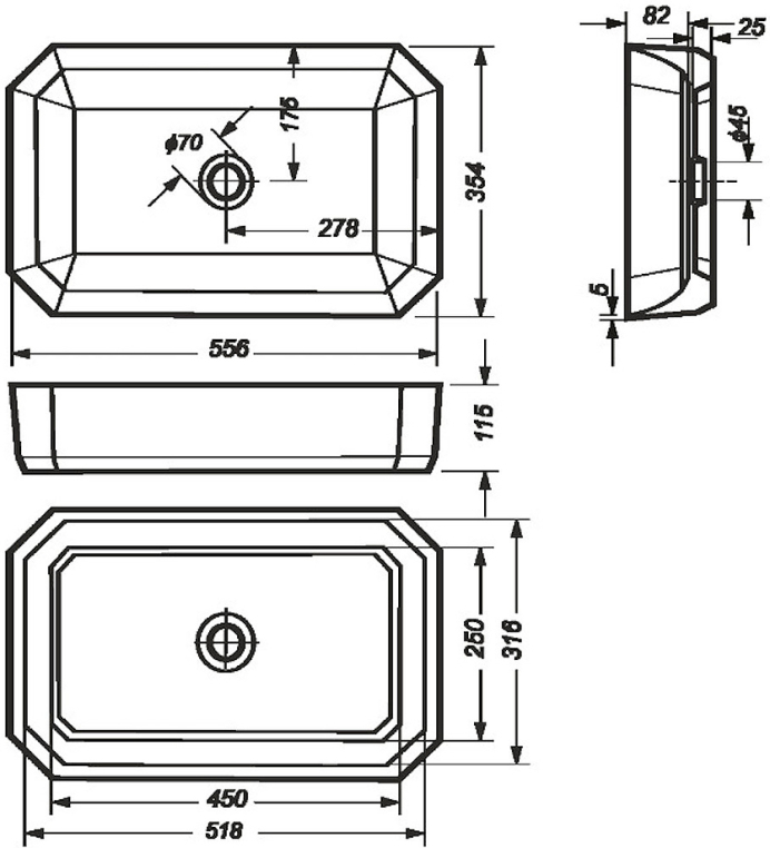Раковина SANITA Line популярной российской компании легко вписывается в интерьер любой ванной комнаты. Накладная конструкция обеспечивает простую установку, экономит место и обеспечивает изящный внешний вид. Изделие выполнено из санфарфора, который обладает повышенной прочностью, устойчив к негативным внешним факторам, таким как грязь и запахи, а так же способен долгое время сохранять идеальную белизну.