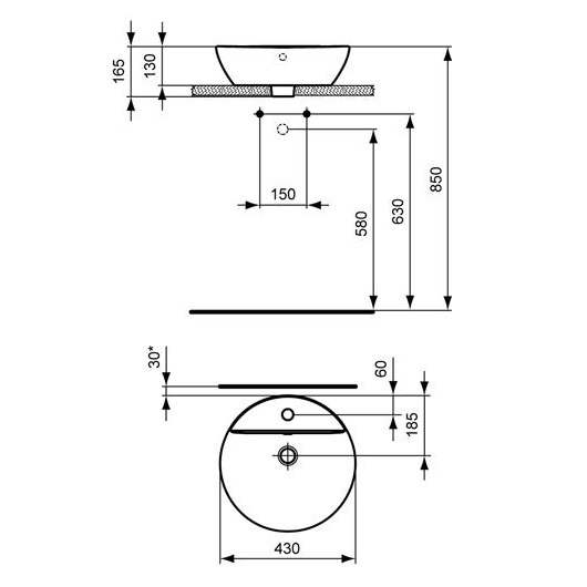 Connect Sphere Умывальник-чаша 43х43 см, 1 отверстие под смеситель, с монтажным шаблоном EESV82867, без крепежа (рекомендуемый крепеж - EEE686067).