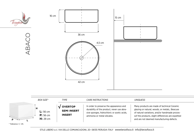Раковина Terzofoco ABACO NERO BLU 0209 TNBL для установки на столешницу