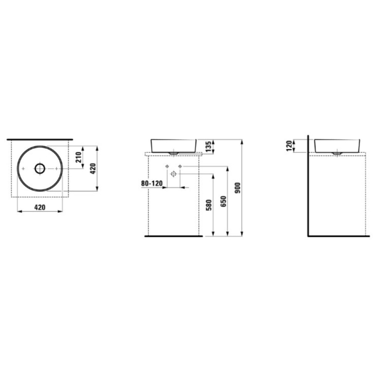 Размер: 420x420x135мм. Накладная раковина-чаша.