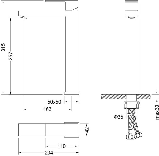 Высота излива, мм