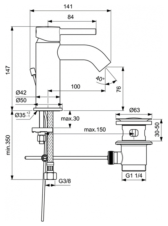 Высота излива, мм