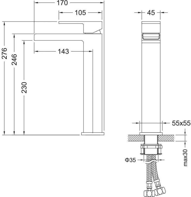 В комплект поставки входят крепления, аэратор и гибкая подводка.