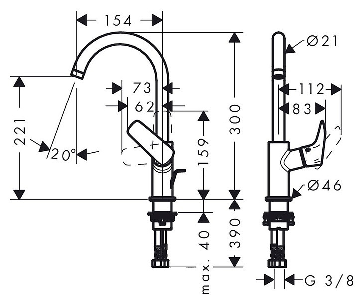 Высота излива, мм