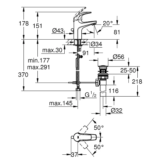 Смеситель для раковины с донным клапаном Grohe BauCurve 32805000 хром