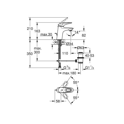 Смеситель для раковины Grohe Eurostyle с донным клапаном 33558003