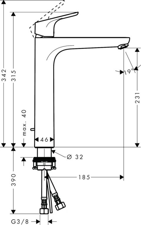 Высота излива, мм