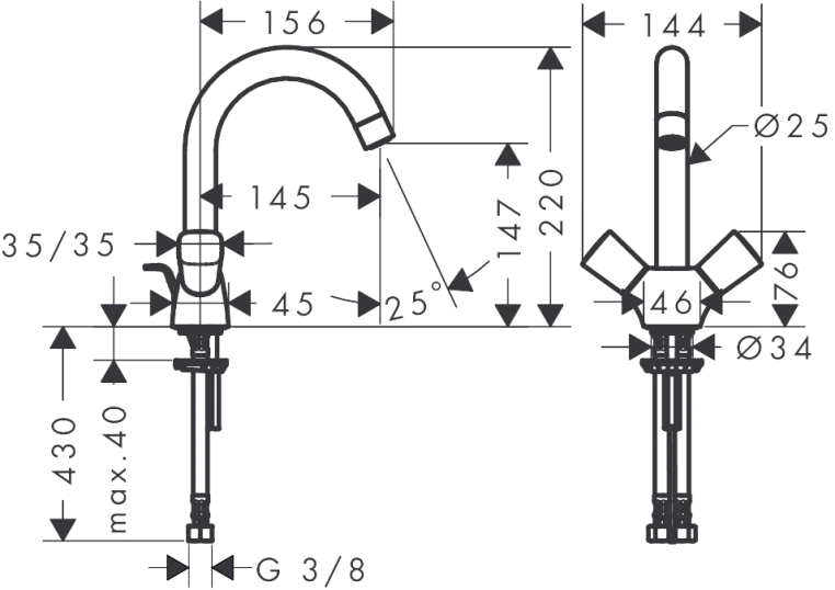 Высота излива, мм