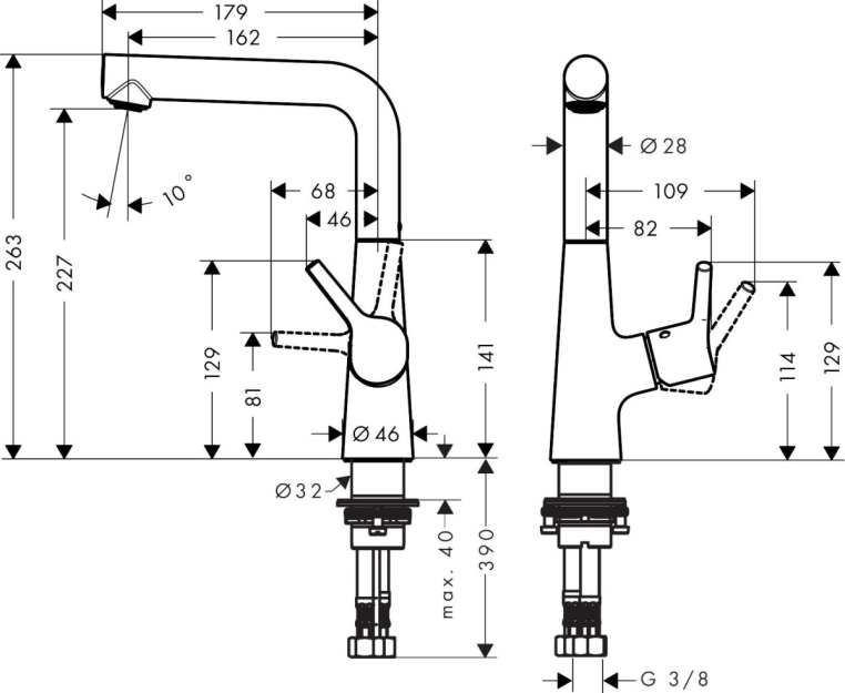 Высота излива, мм