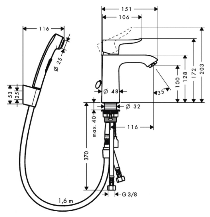 Смеситель Hansgrohe Metris 31285000 для раковины с гигиеническим душем