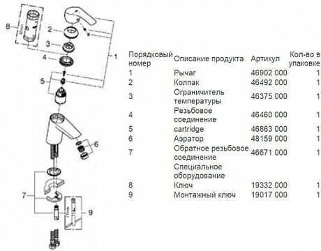 Смеситель для раковины Eurosmart 32154002 Дополнительное описание:
