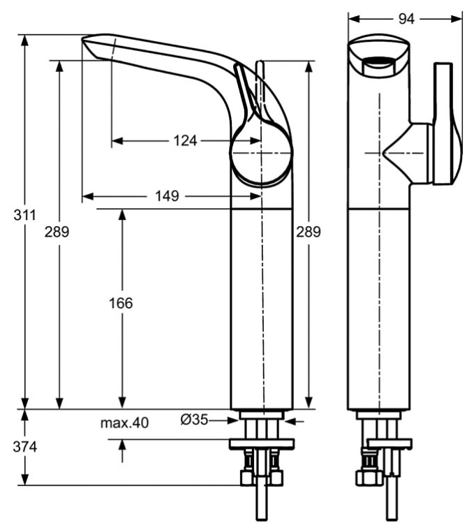 Высота излива, мм