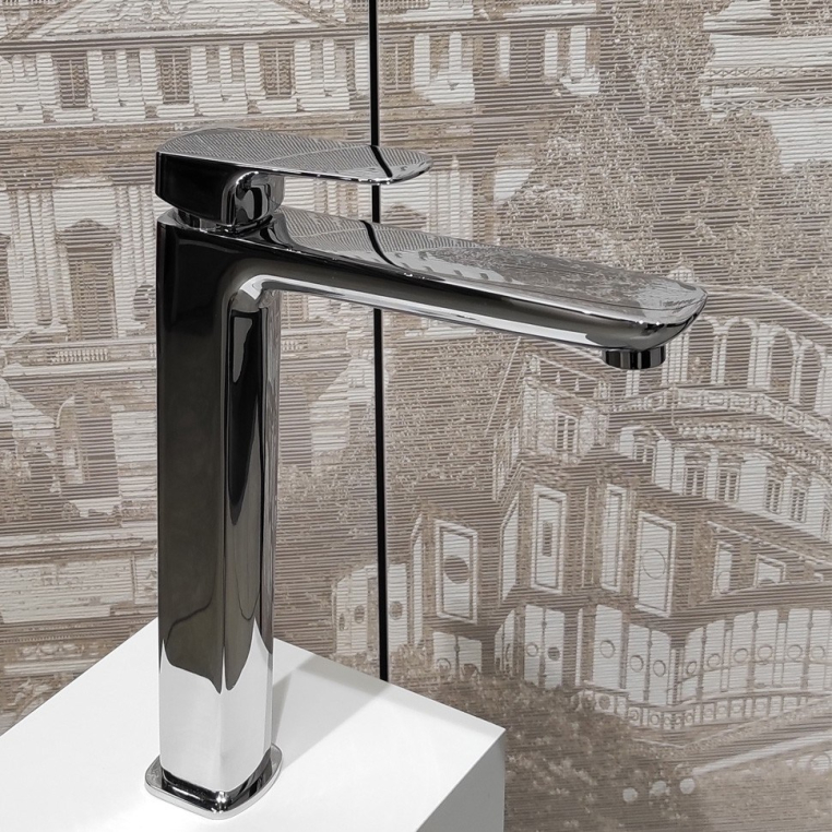 Авторская коллекция итальянского дизайнера Mirko Bosio - Nove. Смеситель коллекции Nove выполнен в акцентной геометрической форме, что можно отнести как к нестандартному конструктивному решению, так и к элементу шика. Широкая ручка рычага элегантно сочетается с квадратным корпусом. Дизайн однорычажного высокого смесителя поддержит скандинавский стиль оформления ванной комнаты или любое иное, выбранное вами, направление минимализма. Благодаря высокому корпусу смеситель Nove идеально сочетается с накладными глубокими раковинами-чашами различного размера, а так же подойдет для использования на широких встроенных и подвесных раковинах.