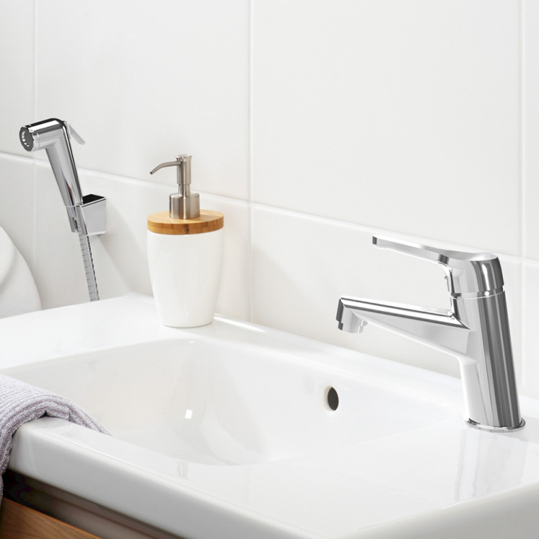 Смеситель Bios предназначен для установки на раковину. Удобная ручка позволяет отрегулировать максимально-комфортную температуру воды. Единое решение для санузла дополнено гигиеническим душем в минималистичном стиле. Крепление смесителя выполняется напрямую к раковине, для лейки предусмотрен подвесной фиксатор. Решение демонстрирует современный стиль и традиционное европейское качество при очень демократичной стоимости. В комплект входит: смеситель для раковины, настенное крепление для лейки, гигиенический душ из качественного пластика ABS и шланг длиной 150 см с системой антискручивания.