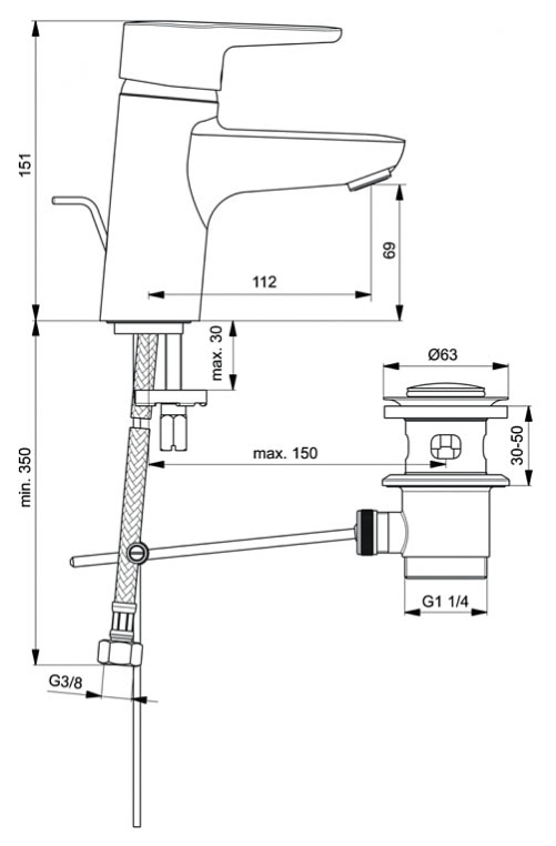 - Металлический донный клапан