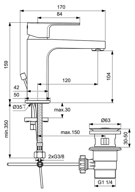 Смеситель для раковины Ideal Standard Cerafine D с пластиковым донным клапаном BC491AA