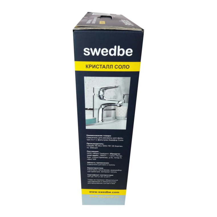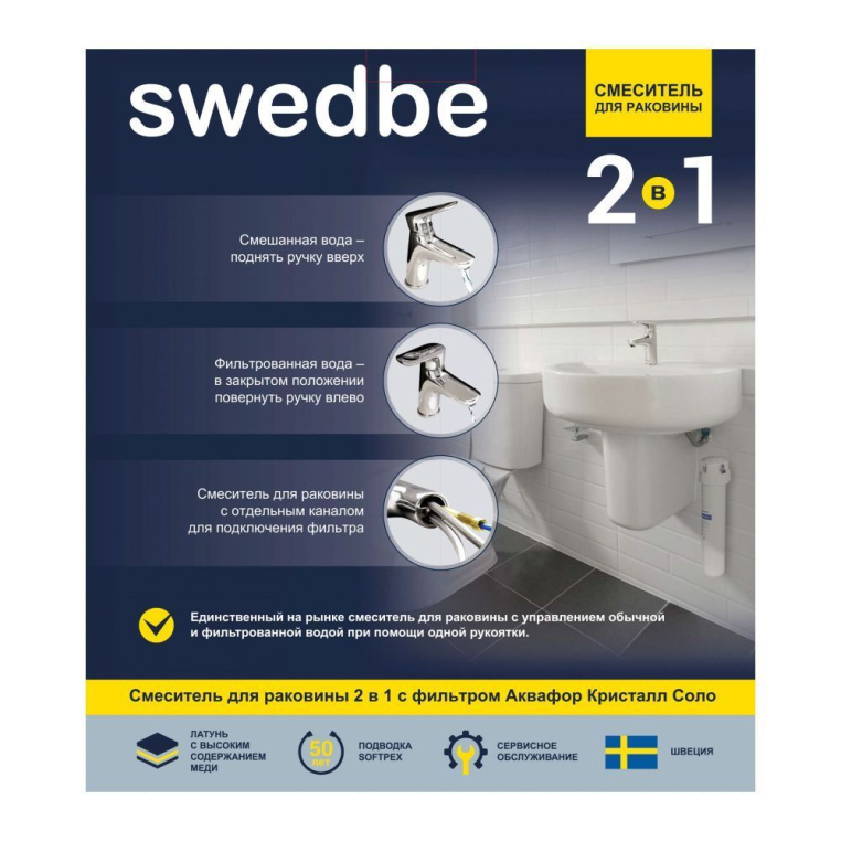 В комплект входит: Фильтр Аквафор Кристалл Соло, смеситель для раковины с каналом для подключения фильтра. Смеситель изготовлен из гигиенически стабильной латуни с высоким содержанием меди. Полностью изолированный канал из химически нейтральных безопасных материалов для фильтрованной воды. Керамический картридж Sedal. Аэратор Neoperl с выделенным каналом для фильтрованной воды. Гибкая подводка SoftPEX. Суперкомпактный фильтр - безопасная вода для детей, аллергиков и пожилых людей. Высокая скорость фильтрации.