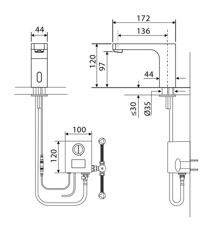Сенсорный смеситель реагирует на приближение рук и включает поток воды