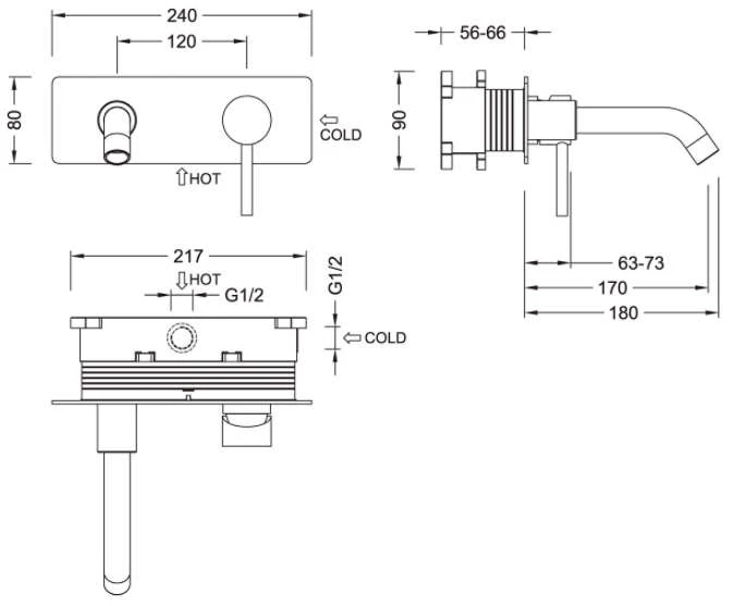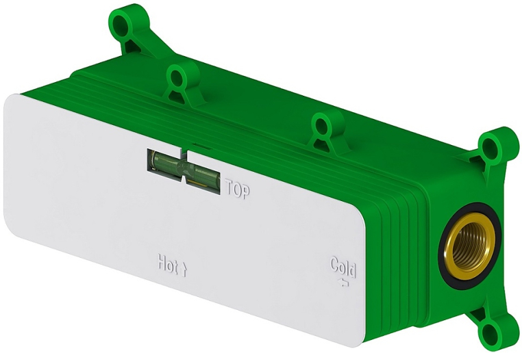 В комплект поставки входят смеситель, монтажная коробка, излив, декоративная накладка, ручка смесителя и шестигранный ключ.