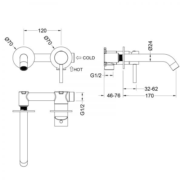 Длина излива (расстояние от корпуса смесителя до конца излива): 17 см