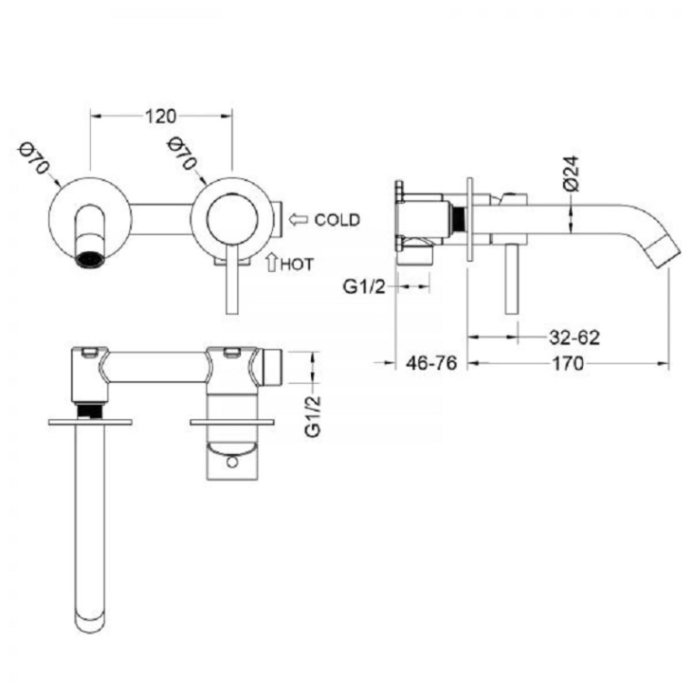 Длина излива (расстояние от корпуса смесителя до конца излива): 17 см