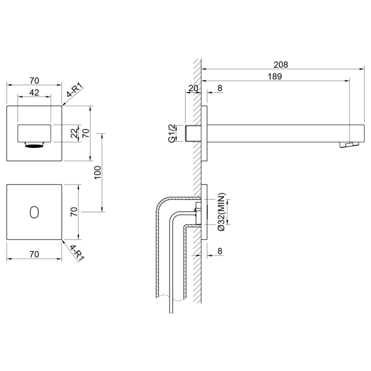 Тип излива: встроенный