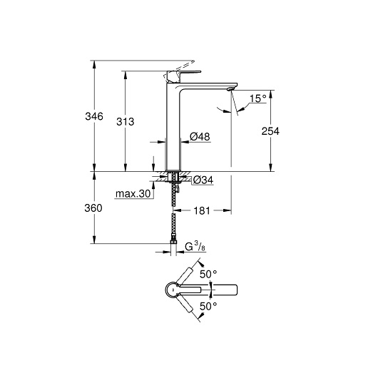 Высота излива, мм