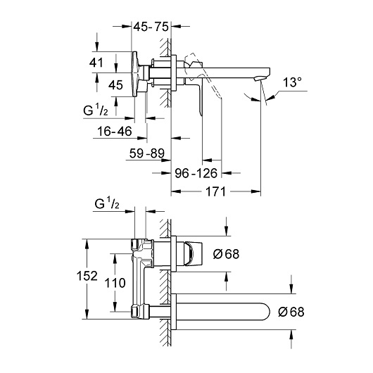 Смеситель для раковины Grohe BauEdge 20474000 со скрытой частью, хром