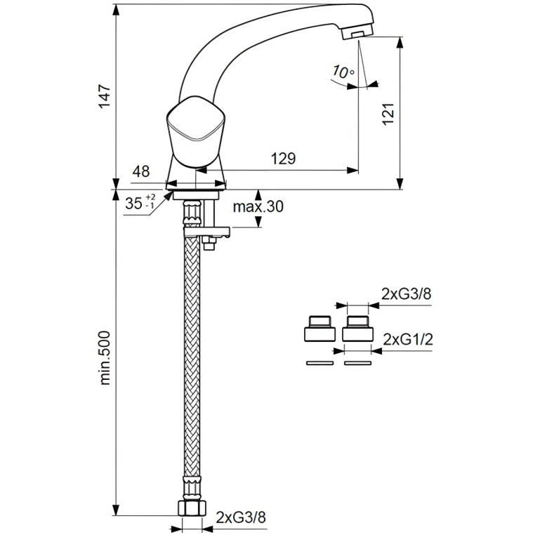 Высота излива, мм