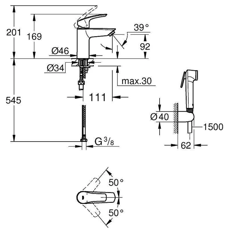 Смеситель для раковины Grohe Eurosmart 23124003 с гигиеническим душем