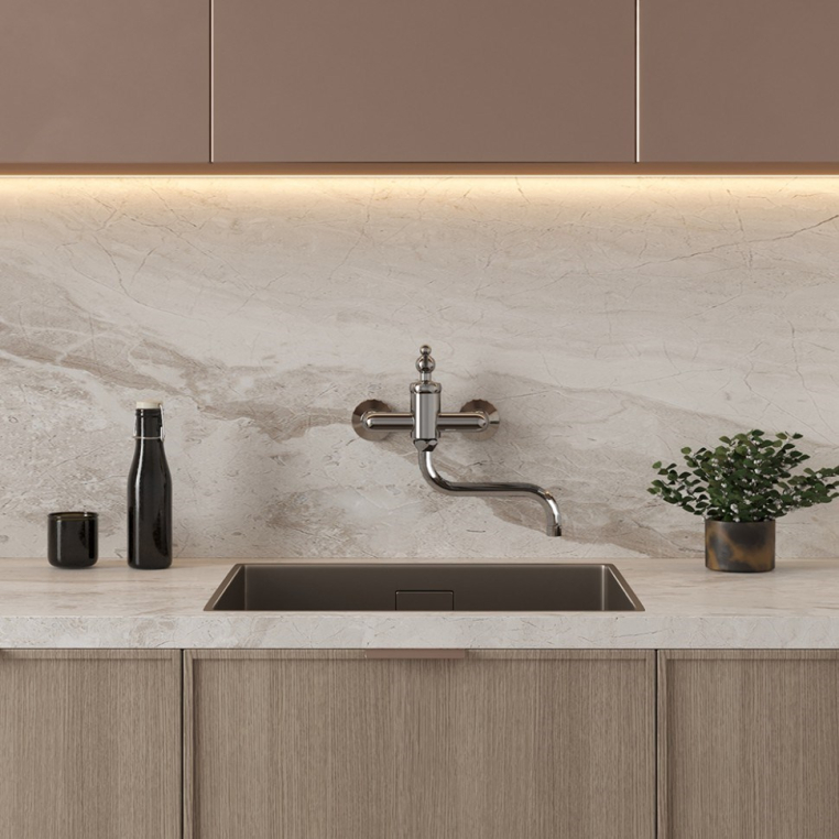Однорычажный смеситель для раковины или ванной сочетает в себе винтажный стиль с современной начинкой и функциональностью. Настенный монтаж позволит расположить смеситель на удобной высоте, а его оригинальная форма, несомненно, внесет элемент ретро в пространство. Антикварные формы DUOMO будут органично смотреться в стилях классика, винтаж или по-новому раскроют интерьер в стиле фьюжн.