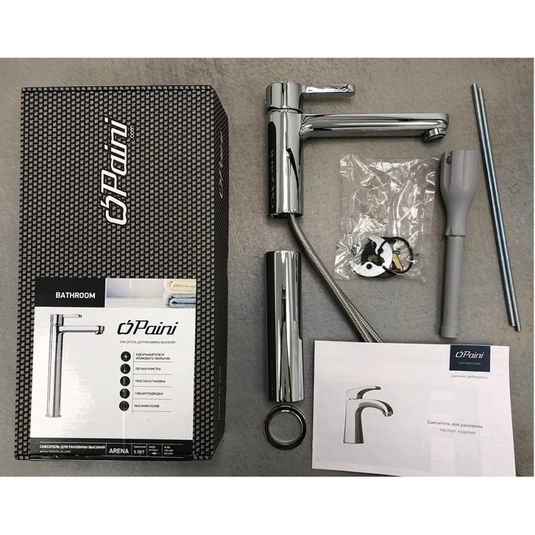 Благодаря высокому корпусу однорычажный смеситель PAINI ARENA идеально сочетается с накладными глубокими раковинами-чашами различного размера, а так же подойдет для использования на широких встроенных и подвесных раковинах. В коплекте монтажный ключ для быстрой установки смесителя.