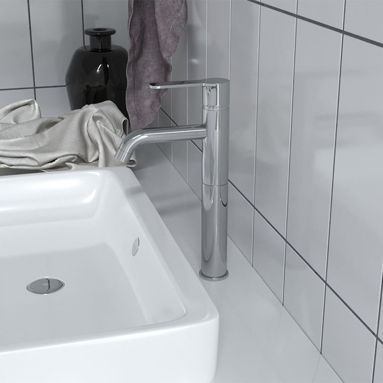 Авторская коллекция итальянского дизайнера Mirko Bosio - Cox. Смеситель коллекции Cox - универсальная притягивающая внимание деталь ванной комнаты, благодаря цилиндрической форме удачно впишется в любой интерьер. Широкая ручка рычага смесителя элегантно сочетается с чуть загнутым изливом. Благодаря высокому корпусу однорычажный смеситель Cox идеально сочетается с накладными глубокими раковинами-чашами различного размера, а так же подойдет для использования на широких встроенных и подвесных раковинах.