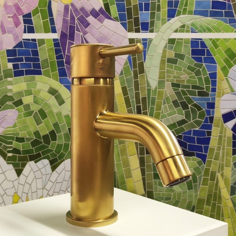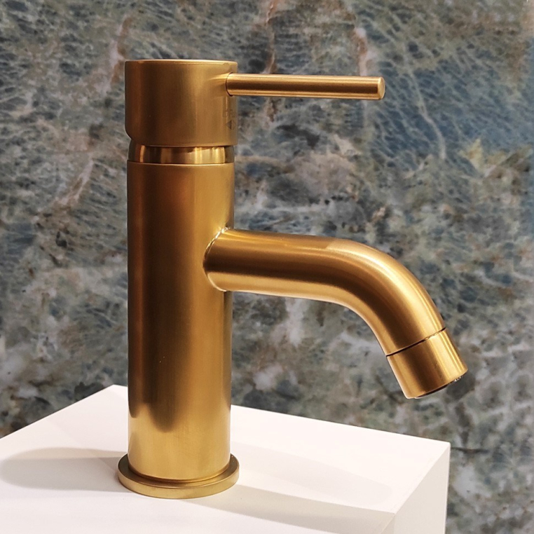 Смеситель для раковины Paini Cox с донным клапаном, матовое золото PVD