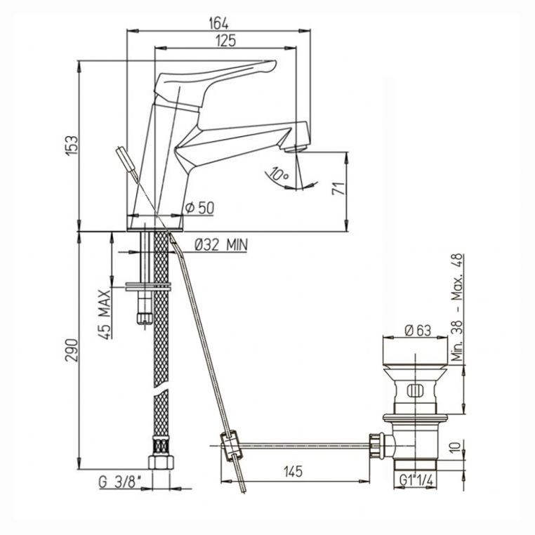 Высота излива, мм