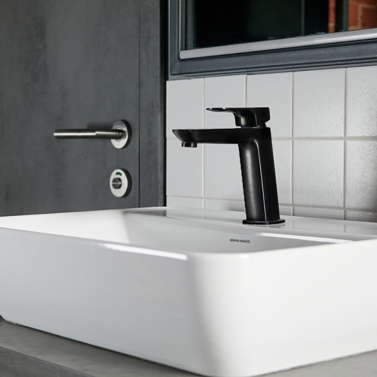 Дизайн смесителя поддержит скандинавский стиль оформления ванной комнаты или любое иное, выбранное вами, направление минимализма.