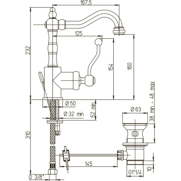 Однорычажный высокий смеситель с донным клапаном сочетает в себе винтажный стиль с современной начинкой и функциональностью. Затейливая форма рычага повторяет изгиб массивного корпуса, а высота смесителя позволяет использование с накладными раковинами-чашами. Антикварные формы DUOMO будут органично смотреться в стилях классика, винтаж или по-новому раскроют интерьер в стиле фьюжн.
