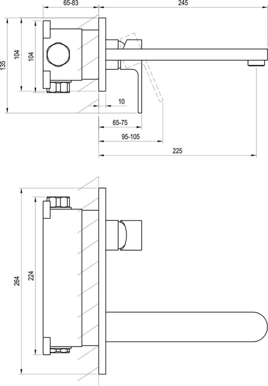 рычажный смеситель для скрытого настенного монтажа с R-box
