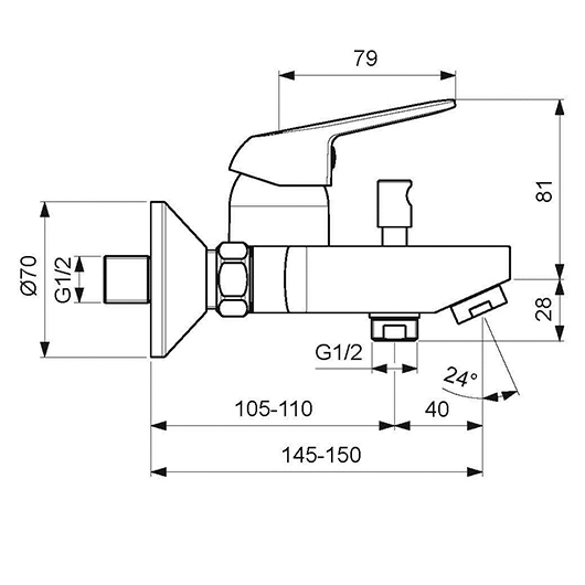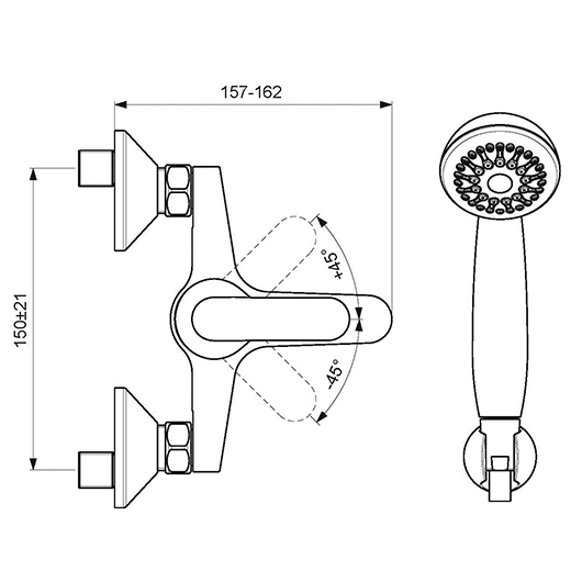 - Переключение ванна/душ: ручное (позволяет использовать функцию “душ” даже при очень низком давлении воды)