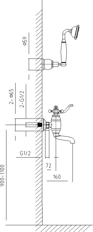 В комплект поставки входят ручная лейка, душевой шланг, эксцентриковые соединители, декоративные отражатели и латунный держатель ручной лейки.
