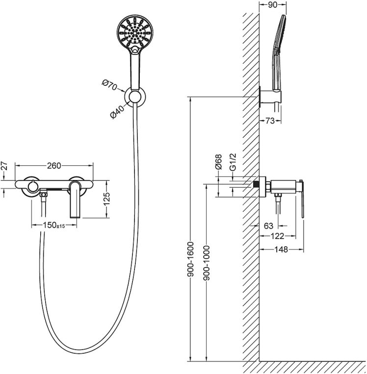В комплект поставки входят ручная лейка, душевой шланг, эксцентриковые соединители, декоративные отражатели и латунный держатель ручной лейки.