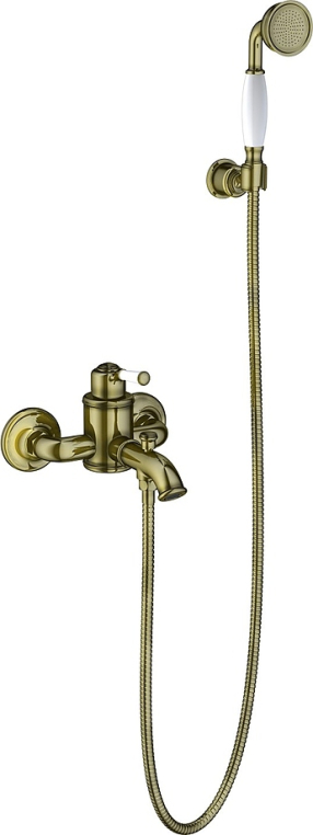 В комплект поставки входят ручная лейка, душевой шланг, эксцентриковые соединители, декоративные отражатели и латунный держатель ручной лейки.