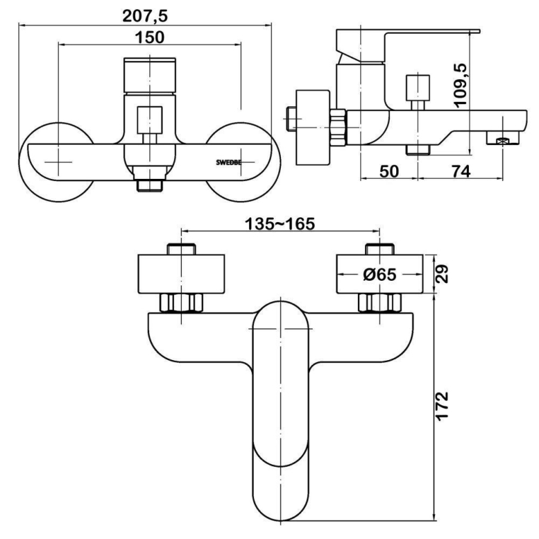 Смеситель Swedbe Vulcan 1130 для ванны с дивертором